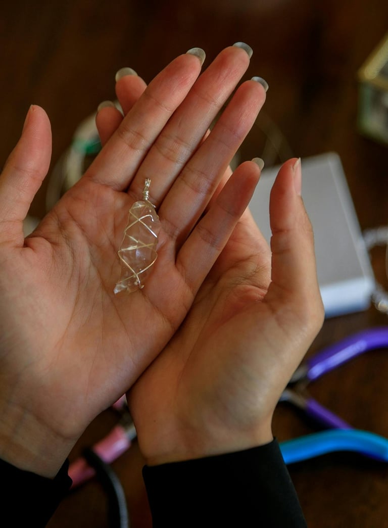 Realizzo ogni pezzo a mano, con la cura che si riserva alle cose destinate a durare nel tempo. Mi piace pensare che i miei gioielli non siano solo accessori, ma piccoli frammenti di luce capaci di raccontare qualcosa di chi li indossa, uno stato d’animo, un ricordo, un momento speciale.